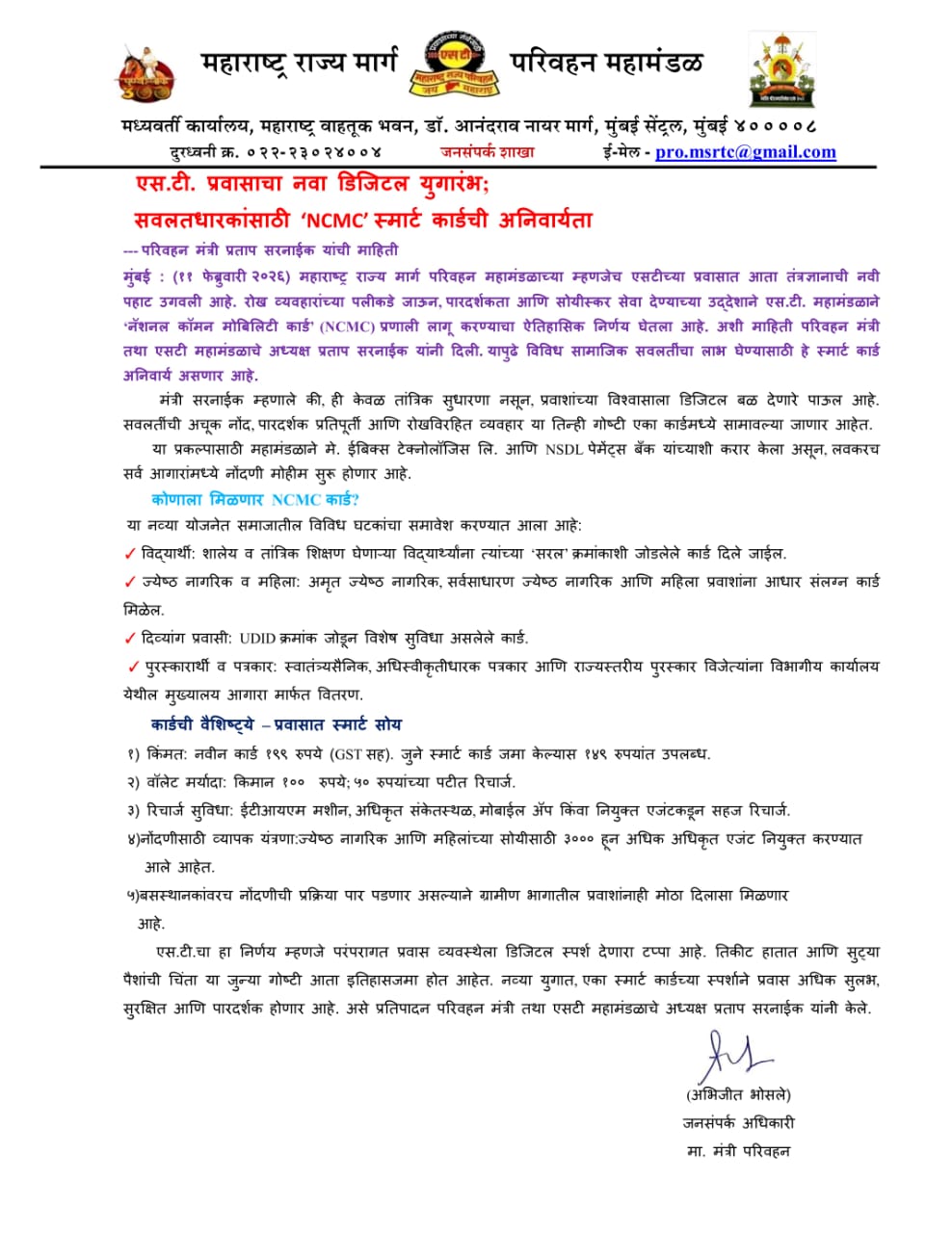 ЁЯУв MSRTC NCMC рдХрд╛рд░реНрдб GR рд╡ рдкрд░рд┐рдкрддреНрд░рдХ
